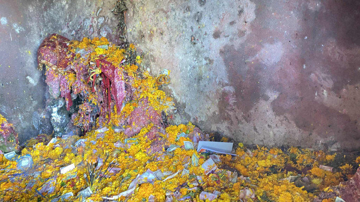 नजिकै रहेको देउरालीमा चढाएको भेटी (पैसा) बाटोमा छरिएका रहेछन् । ति छरिएका
