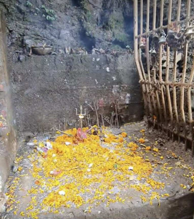 १ किलोमिटर दुरीको पैदलयात्रा पछि प्राकृतिक रुपमा बनेको मन्दिरभित्र जा–ज्वल्यमान देवीकोे