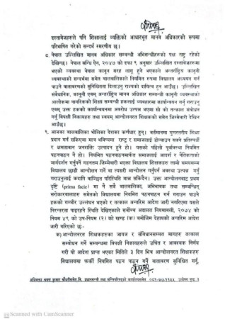 बैशाख ११ । सर्वोच्च अदालतले देशैभरीका बालबालिकाले नियमितरुपमा विद्यालयमा पठनपाठन गर्न पाउने हकबाट बञ्चित नगर्न सरकारका नाममा आदेश गरेको छ । आन्दोलनरत शिक्षकहरूको जायज र संविधानसम्मत मागहरू तत्काल सम्बोधन गरी आवश्यक निर्णय गर्न सरकारका नाममा आदेश जारी गरेको हो । न्यायाधीश डा.नहकुल सुवेदीको इजलासले बैशाख ११ गते प्रधानमन्त्री तथा मन्त्रीपरिषदको कार्यालय सिँहदरबार काठमाण्डौ समेतलाई आदेश गरेको छ । आदेश पाएको मितिले ३ दिनभित्र आन्दोलनरत शिक्षकहरूलाई विद्यालयमा फर्काइ नियमित पठनपाठन गर्ने वातावरण सुनिश्चित गर्न आदेश दिएको हो ।