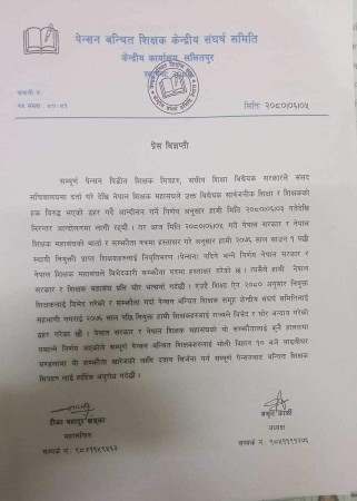 शिक्षकलाई विभेद गरेको र सम्झौता गर्दा पेन्सन बन्चित शिक्षक समुह केन्द्रिय